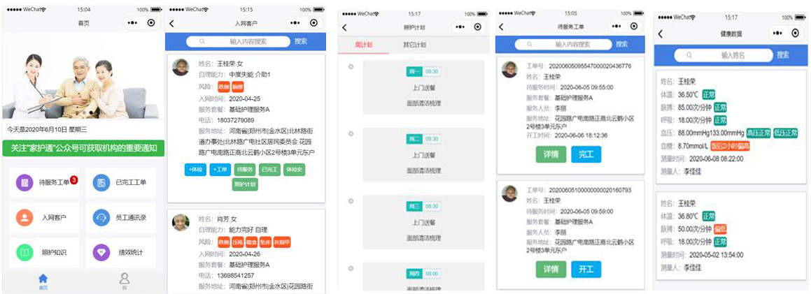 養(yǎng)老服務(wù)企業(yè)針對部分有特殊需求的老年人上門提供"準(zhǔn)"養(yǎng)老院的生活照料服務(wù)、護理服務(wù)和醫(yī)療服務(wù)等,還可以在老人家中安裝物聯(lián)網(wǎng)環(huán)境監(jiān)測探頭、智能健康監(jiān)測設(shè)備等,對居家老人進行24小時安全自動值守。服務(wù)企業(yè)通過"居家照護運營管理系統(tǒng)"對機構(gòu)客戶、員工、服務(wù)進行管理,老人家屬通過"家護通"接收報警信息。