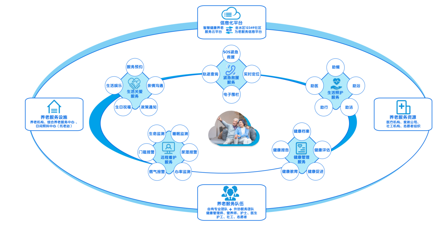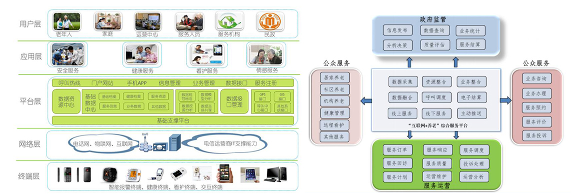 大象通信將"民政養(yǎng)老業(yè)務(wù)綜合監(jiān)管平臺"、"智能養(yǎng)老應(yīng)用平臺"集成到一起,面向"全國居家和社區(qū)養(yǎng)老改革試點(diǎn)城市"以及其他政府主要領(lǐng)導(dǎo)重視養(yǎng)老工作的城市,貼近當(dāng)?shù)氐酿B(yǎng)老現(xiàn)狀、業(yè)務(wù)需求、管理需要進(jìn)行定制開發(fā),形成具有當(dāng)?shù)靥厣?互聯(lián)網(wǎng)+養(yǎng)老"綜合服務(wù)平臺,構(gòu)建因地制宜的智能養(yǎng)老應(yīng)用體系,發(fā)展"互聯(lián)網(wǎng)+養(yǎng)老"新業(yè)態(tài)、新模式,助力養(yǎng)老服務(wù)高質(zhì)量發(fā)展、高水平監(jiān)管。 "互聯(lián)網(wǎng)+養(yǎng)老"綜合服務(wù)平臺架構(gòu) "互聯(lián)網(wǎng)+養(yǎng)老"綜合服務(wù)平臺功能視圖 |